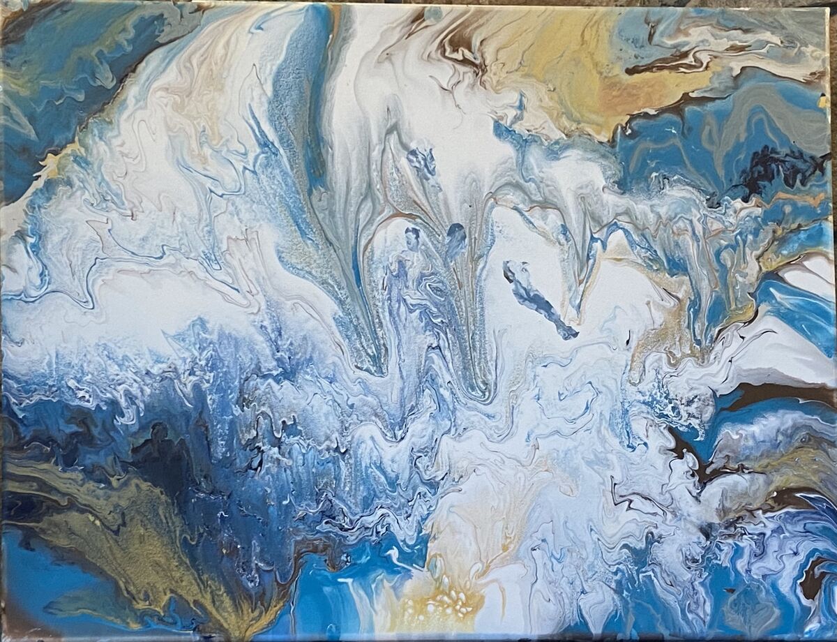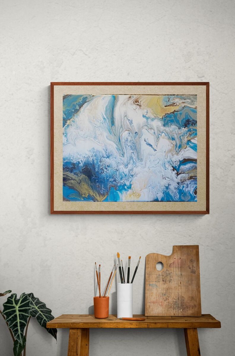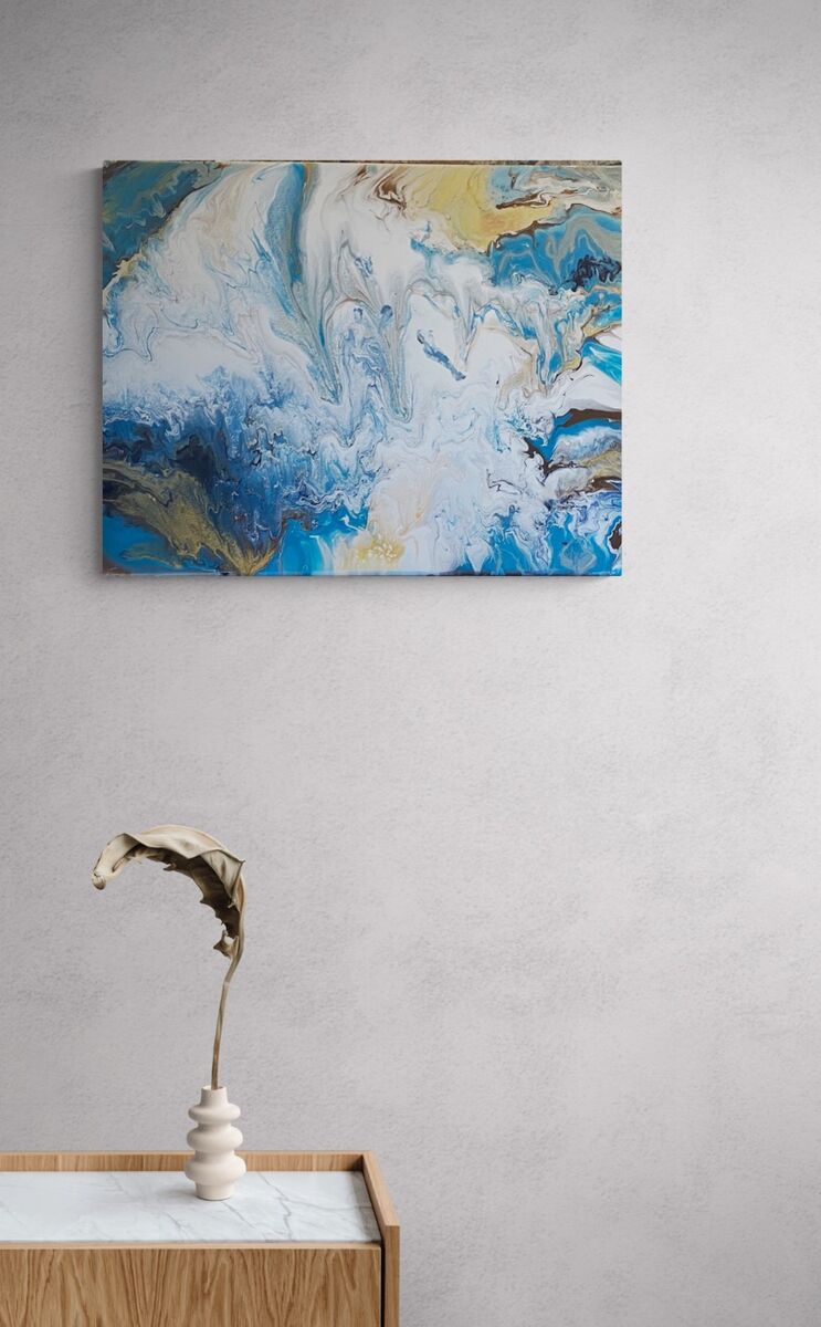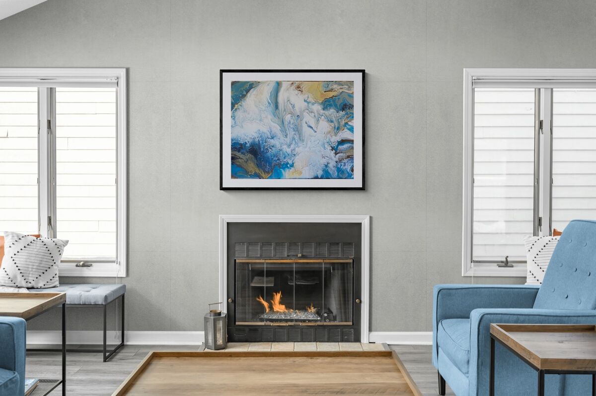 5 gallery wrapped canvases placed together to give a view from a cave looking out at sun set total width 68”x36”