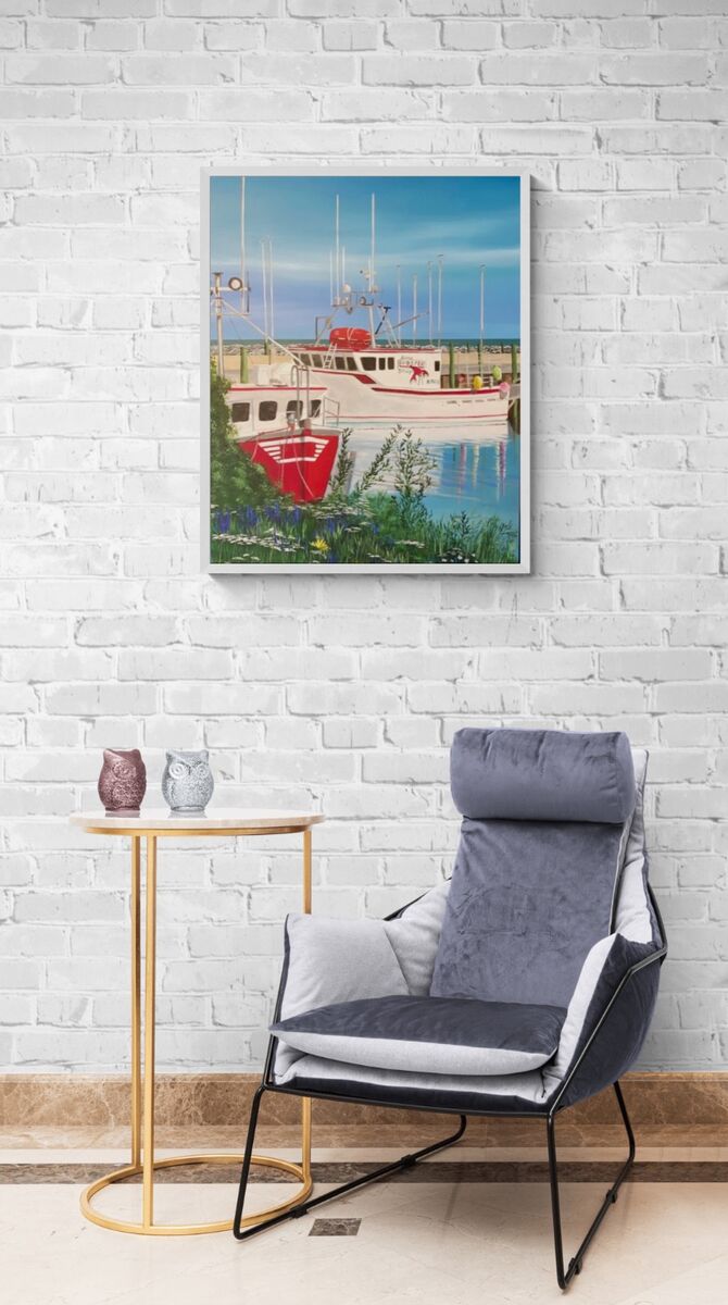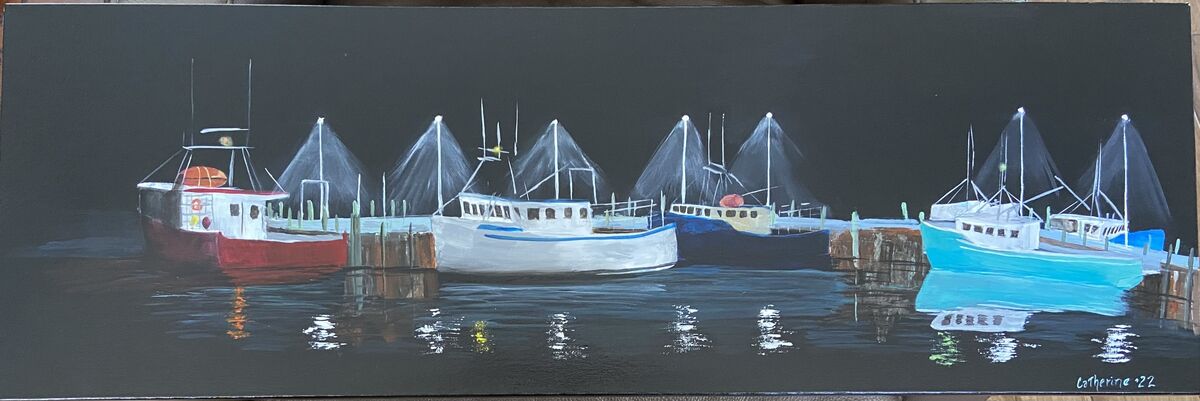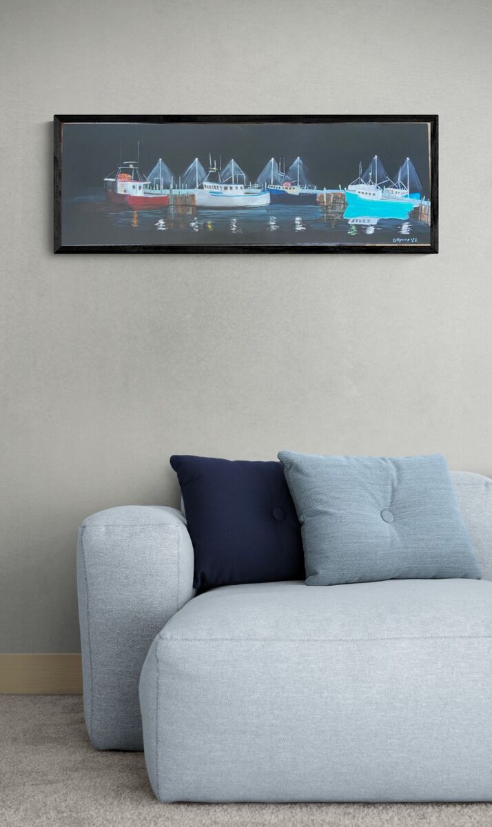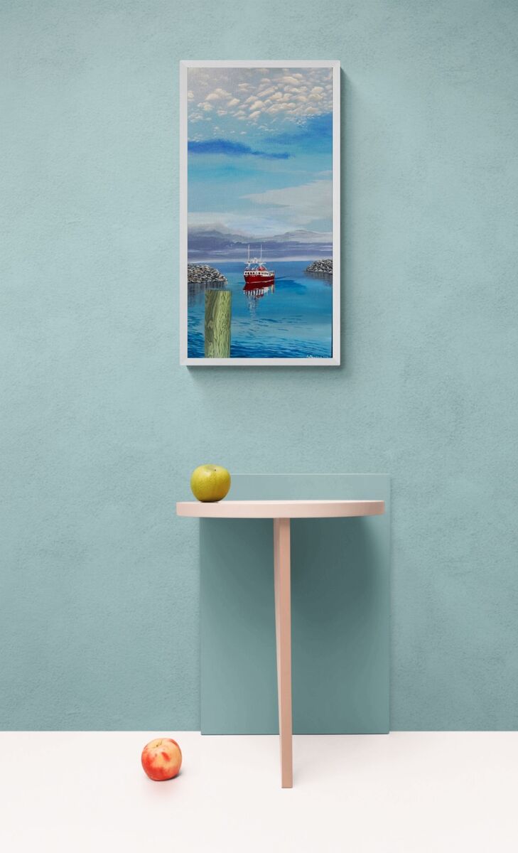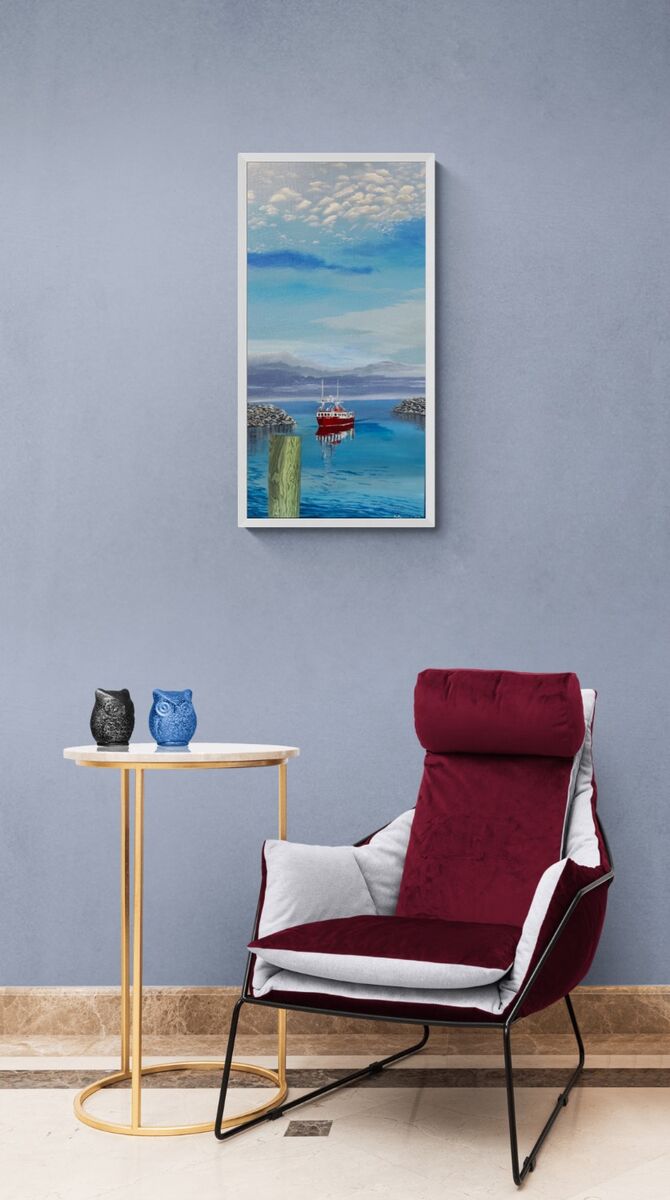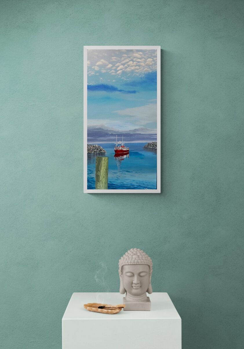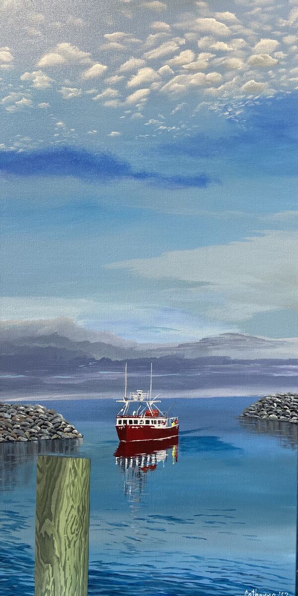 Nice evening returning to Harbour after fishing - the sky inspired me Prints available Various sizes Both on dura canvas and somerset velvet paper